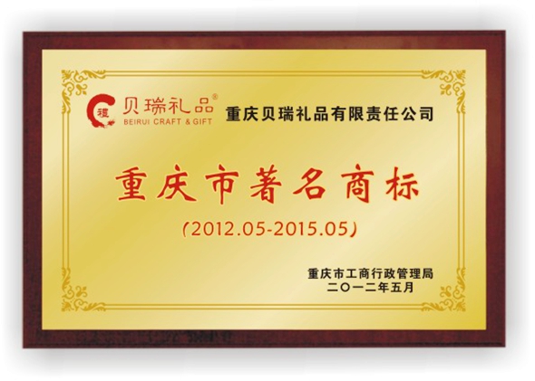 在2013年11月28日举行的“2013年沙坪坝区商标战略发展工作推进会暨商标培训会”上,贝瑞礼品因荣获“重庆市著名商标”特别受邀与会,并在会上受到沙坪坝区对“重庆市著名商标”的极大肯定和特别嘉奖并获得现金奖励。