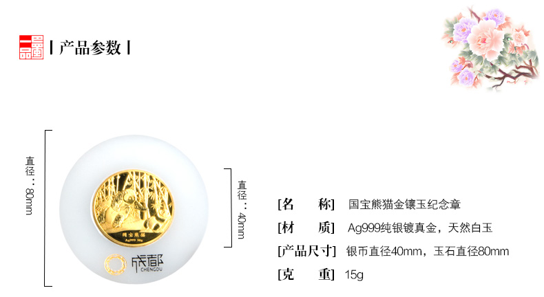 - 商品编码 国宝熊猫金镶玉纪念章
