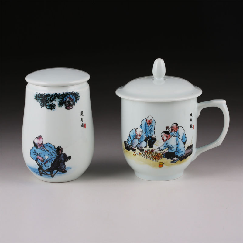 【规 格】140*138mm(杯)/131*88mm(罐) 【起 订 量】100套 【生产周期】15天 【产品简介】 遛鸟与下棋,都是人们生活中颇有趣味的消遣。遛鸟人,提笼哼曲,乐得自在悠闲;下棋者,摆兵布阵,斗个你输我赢。可谓是“不为无益之事,何以遣此有涯之生?” 本套装均采用汉族传统制瓷工艺中的珍品——影青釉作为主要材质,影青釉胎质细腻光洁,青中带白,白中闪青。采用“粉彩”工艺,绘以悠闲自在的遛鸟图、逼真生动的棋文化,让人仿若身临其境,感受到生活的乐趣所在。实乃商务馈赠、会议礼品的最佳选择。