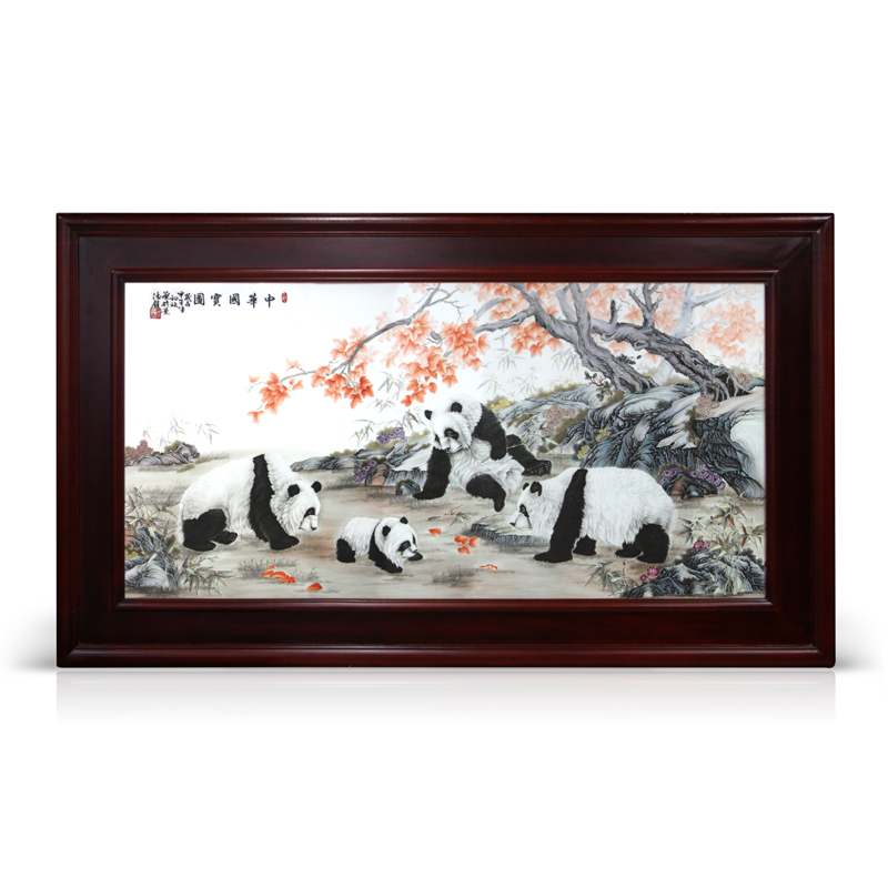 【产品简介】四川被称为“大熊猫的故乡”,在这块美丽的土地上栖息着我国85%的珍稀大熊猫。它憨态可掬、温柔可亲的形态深受大家喜爱。本品选自景德镇精品陶瓷,由知名画师亲手绘制后烧制而成,通过工艺师之手生动的刻画出活泼灵动的熊猫融入在人与自然和谐相处的画面,传达出无限温馨与喜悦,给人富足、平和、幸福的观感,实为一副难得的工艺精品,具有极高的馈赠与收藏价值。