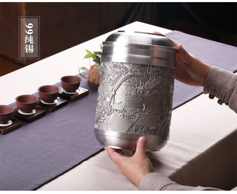 - 当前位置:首页 > 特色礼品 > 廖达锡器 > 工艺礼品 > 《清明上河图》纯锡茶叶罐