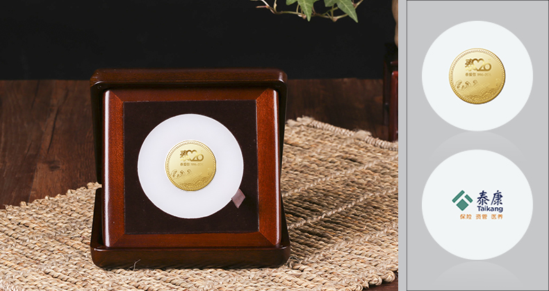 金,是第一贵重金属;玉,又有着纯洁高雅的美誉。人们常说“金玉满堂”,金玉自古以来是吉祥美满的传统象征。本款以Ag999纯银镀金(出具专业鉴定证书)、天然玉石为材质,彰显出隆重而又喜庆的东方传统文化底蕴。同时,金玉的搭配也展现出企业对周年庆活动的重视。